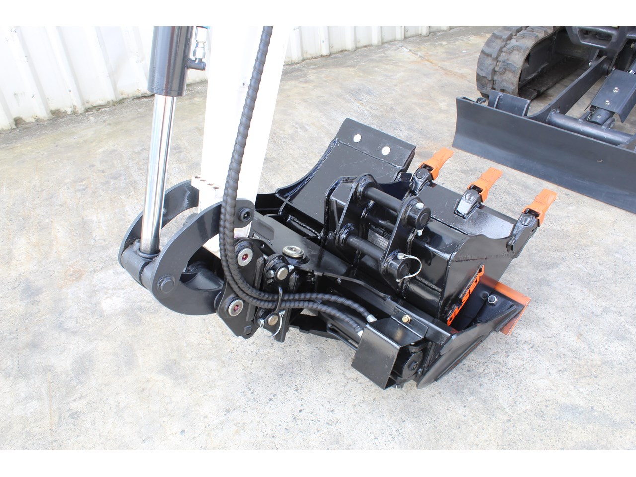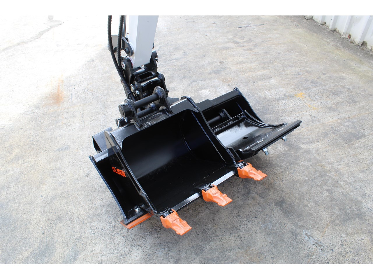 Attachments: Olsen pull pin hitch, 900mm tilt bucket, 400mm dig bucket, 200mm spade frame & 300mm spade insert