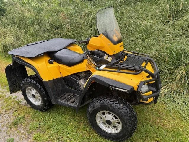 This is a 500 V Twin Can-Am, we sold this model new. It was way ahead of the competition in the day. Has power steering and a winch 2/4 wheel drive big screen 40 plus HP - what a machine it was!!! We have just traded this tidy one and just serviced and set up suspension - it's all good and ready to go! Speedo is not working correctly so we say its done 100,000km.