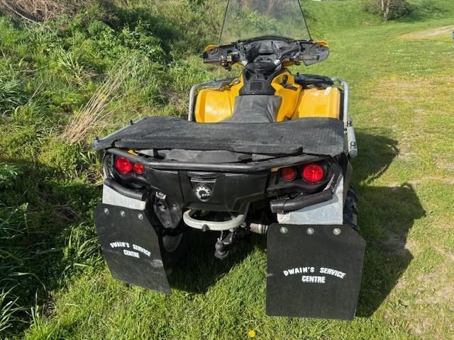 This 2014 Outlander 650XT come standard with a winch and bar protectors. Its in good sound condition and we have just given it a full service. It come from a hilly sheep farm so its been fitted with rear spacers (removeable) But its incredibly stable on hilly ground. Has dessert tyres on it so can handle muddly conditions. This model has adjusted power steering and has a low speed key with it. It is ready to go. Speedo reads 9,850km - I Think it has been replaced. Extras on this one include Bull bars, Side protector bars, hot grips, screen mount, Tow bar and ball, heavy duty tyres and winch remote.