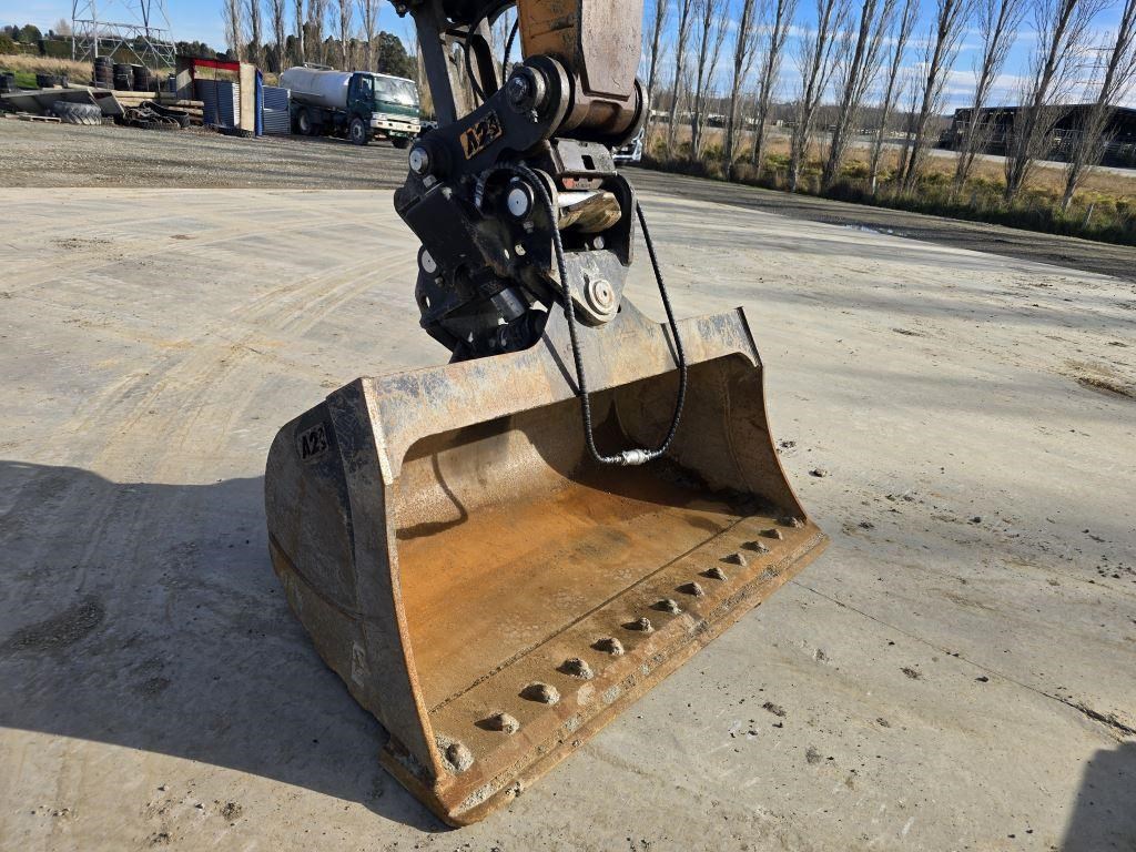 This unit is set up with an A2 Hydraulic Coupler, Tilt Bucket and Dig Bucket.
