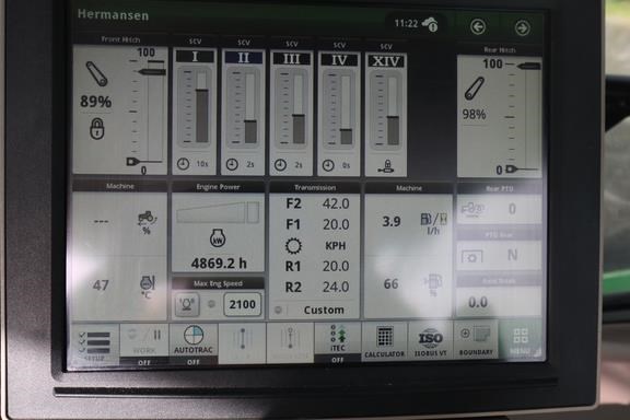 Features: New Zealand, AutoPowr Infinitely Variable Transmission (IVT) 40 km/h (25 mph), Single 25.4 cm (10 in.) CommandCenter Display, AutoTrac Ready, StarFire 6000 Receiver - SF3 Ready, Generation 4 CommandCenter AutoTrac Activation, 4600 Processor, ComfortView Cab with CommandARM, Standard Air Seat, Mirrors - Manual Telescopic with Wide Angle, Panorama Windshield with Panorama Doors, Standard Radio, Hydraulic Pump - 114 L/min, 4 Electronic Selective Control Valves (SCV) - Premium, Rear PTO - 540/540E/1000 - for Flange Axle, Draft Links with Hook End - Category 3N, Centre Link with Hook End - Category 3, Stabiliser Bars - Adjustable, Flanged-Type Rear Axle, Adjustable Steel Wheels, Rear Wheels 650/65R38, Rear and Front tyre Brand - Michelin, 4WD front axle - TLS Plus, Adjustable steel wheels, Front Wheels 540/65R28, Shipment Preparation - By Ship Overseas, with Conservation, Toolbox, Front Fenders for Mechanical Front-Wheel Drive (MFWD) - Turnable, Fender Extension, One-Piece Side and Rear Extension, Tractor Implement Automation - Tractor Activation, 4WD gear ratio 1.515, Climate Control, iTEC - Headland Management System, 7-Pin Signal Interface Socket, Internal Rearview Mirror, 3-Pin Power Sockets, Passenger Seat / Instructional Seat, Rear Window Washer and Wiper, Fuel Tank Bottom Guard, Power Beyond Preperation - Rear, Front Power Take-Off (PTO), Holder for Front Hitch Sway Chain, Premium Front Hitch, Electrical joystick, Front centre link with hook Cat. 3, Drawbar, Ball Holder, Hitch Ball - Category 3 - Reduced to Category 2, Dual Beacon Lights, Light package - Ultimate, Beltline Worklights - LED (two), Alternator 14V / 240A, Hydraulic Trailer Brake System, Multi-Power Outlet Strip, License plate bracket - rear, Rear Wheel Weights - Quick Mount - 300 kg (661 lb)