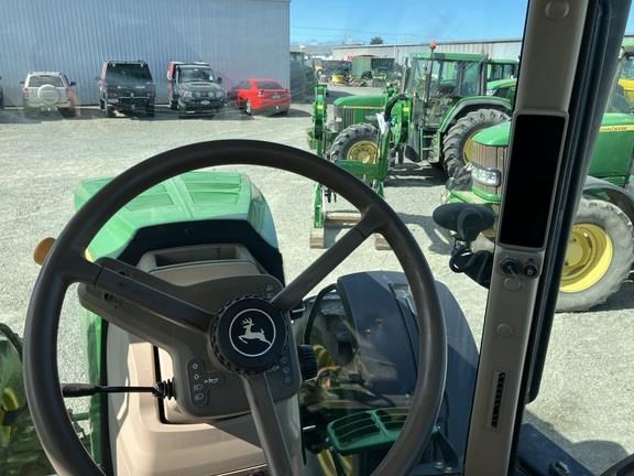 Features: New Zealand, AutoQuad PLUS Eco 25 mph (40 km/h) 20F/20R with Left Hand Reverser Control and Field Cruise, Touchscreen GS3 CommandCenter 7" Color Display, Video Capable, AutoTrac SF1 Activation - GS3, Deluxe CommandView II Cab with RH Console and Active Seat, Deluxe Radio Package, 32 gpm / 121 L/Min. Hydraulic Pump (45cc), Three Deluxe Rear Remote Selective Control Valves, Economy Speed @ 1730 Engine rpm., 12,000 Lb. Capacity 3-Point Hitch (Cat. 3/3N) with Quik-Coupler, Category 3, Adjustable Swing Drawbar for use with a 38 mm Pin, 3-15/16 In. (100 mm) Dia x 100.4 In. (2550 mm) Length, Steel Wheels and Cast Hubs, 650/65R42 In. 158A8 R1W Radialin Single Wheel Configuration, 1300 Series Mechanical Front Wheel Drive Axle, 540/65R30 In.143A8R1WRadial, Deluxe Lighting, Fenders, Deluxe Pivoting Front for MFWD - 24.4 In. (620 mm) Wide, Fender, Full Coverage Rear - 100 In. (2.55 M) Width, Foot Operated Speed Control, John Deere PowerTech PSX 6.8 L (414 cu. In.) 6 Cyl IT4 / Stage 3b Compliant Diesel Engine, Drawbar Clevis, Cat. 3 with 1.5 In. (38 mm) Pin, Weight, Front Support - Less Weights