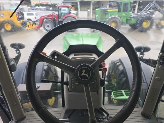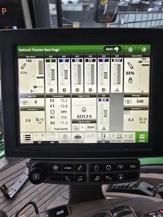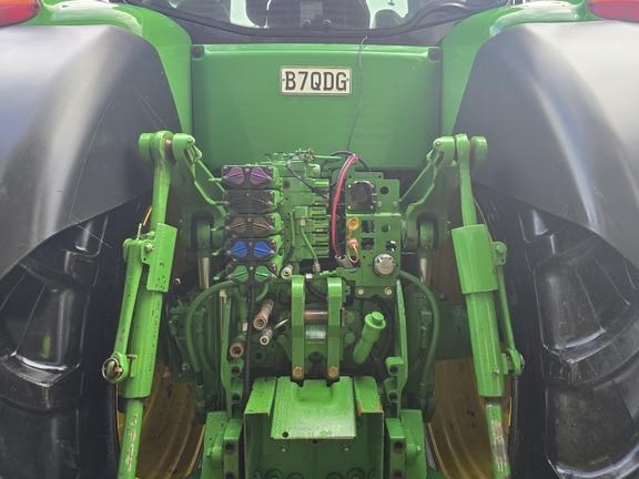Features: New Zealand, AutoPowr Infinitely Variable Transmission (IVT) 42 km/h (26 mph), 4600 CommandCenter, 4600 Processor, Premium CommandView III Cab with Cab Suspension, Premium Radio Package, Left-hand Reverser Linear-Type Transmission Controls, John Deere PowerTech 6.8 L (414 cu. in.) 6 Cylinder Stage II Compliant Diesel Engine, 223 L/min (59 gpm) Hydraulic Pump, Five Premium Rear Remote SCVs with Electrohydraulic Controls, Premium Couplers and High Pressure Relief Levers, 35 mm (1-3/8 in.) 540/540E/1,000 rpm PTO, 45 mm (1-3/4 in.) 1,000 rpm PTO, electronically shiftable in cab, RII Hitch W/NA Sway - 6,894 kg (15,200 lb) Capacity 3-Point Hitch (Cat 3/3N), Category 3 Adjustable Swinging Drawbar for use with a 38 mm (1.50 in.) Pin, 100 mm (3,94") de diámetro por 3010 mm (118,5") de longitud, Cast Wheels with Single Taper Hubs, 480/80R50 159A8 R1W Radial in Dual Wheel Configuration, Michelin Brand Only, 1300 Series MFWD with TLS Plus, Driveline Shield and Limited Slip Differential, 600/70R30 152A8 R1W Radial, Premium Lighting, Fenders, Pivoting Front - 620 mm (24.4 in.) Wide, Fender, Extra Coverage Rear - 2.55 m (100 in.) Width, Ethernet Switch, Leather Comfort Package, Outside Mirrors - Power Telescoping, Heated, Electrically Adjustable, Right-hand and Left-hand, Radar with Dual Beam Sensor, Antenna Mount and Wiring for Business Band (2-Way) Radio, Actively Cooled Refrigeration Unit 6.4 L (391 cu. in.), Foot Operated Speed Control, Left Hand Step Mud Guard, Fuel/Water Separator, Severe Duty, PTO, Independent Front with 35 mm (1-3/8 in.), 21-spline, 1000 rpm, CCW Rotating Shaft as Viewed from Front (Type 2), Standard Front Hitch with Two Front Auxiliary Couplers, 5,200 kg (11,450 lb) max lift capacity at hitch balls, Joystick Control, Trailer Brake, Dual Line Hydraulic, Battery Disconnect Switch, One Pair 72 kg (159 lb) Starter Weights and One Pair 205 kg (452 lb) Weights