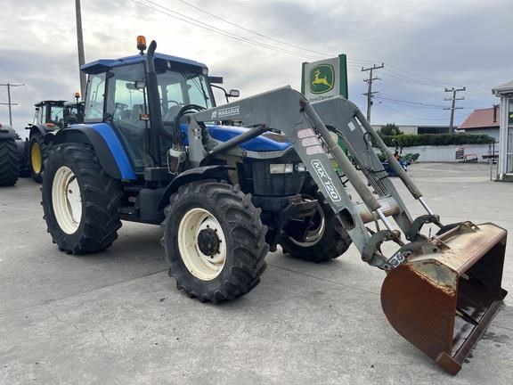 2002 New Holland TM125 Row-crop tractor. 100HP rear PTO. Mailleux MX120 Loader fitted with bucket. 5960 Hours. stk# 520761