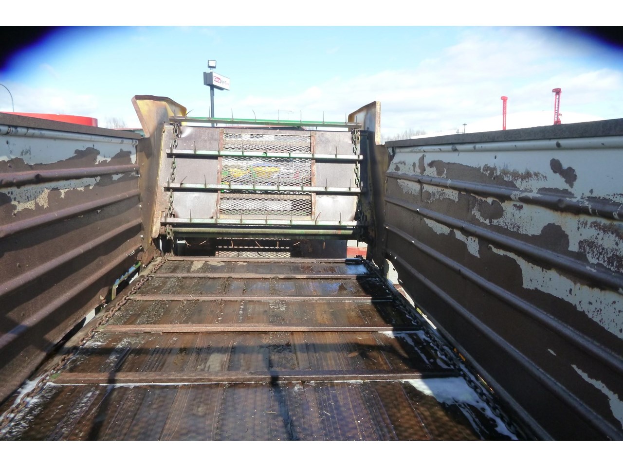 Sam small side feed wagon, 1997, as traded, solid chassis, on single axle with 28inch tractor wheels.
