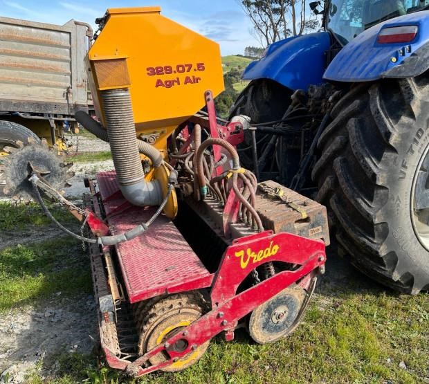 Vredo 329.07.5 Agri Air - Three Point Linkage Air Seeder, 2.9 Mtr Working Width, 75mm Double Disc Row Spacing, 450 Ltr Seed Hopper. Packer Ring Roller. Seeding Rates From 3 - 190 Kg Per Ha. Electronic Calibration.